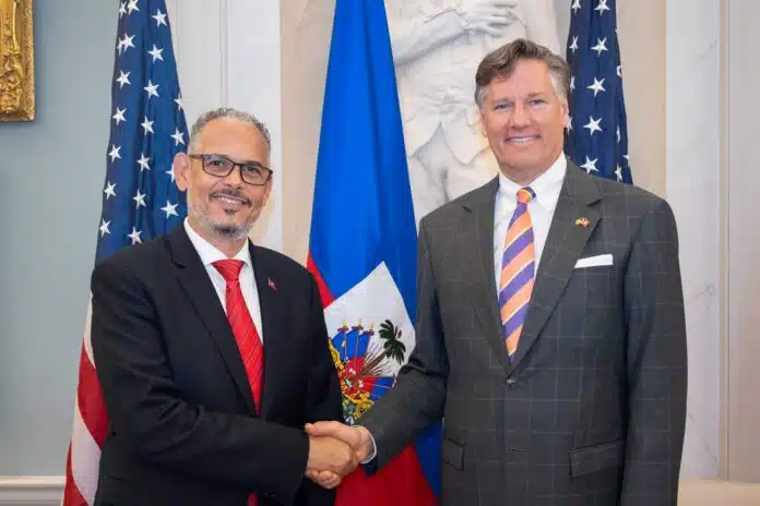 Mais c’est triste d’entendre que ce sont les États-Unis qui affirment que la crise haïtienne constitue une menace pour la région. Alors que ce sont eux qui l’ont fomentée, ce sont eux qui ont jeté cette malédiction sur le pays. Ainsi poursuit le communiqué : « Le secrétaire d’État adjoint, M. Landau, a réaffirmé que la crise sécuritaire en Haïti constituait une menace pour notre sécurité régionale et nationale. Les deux responsables ont souligné l’importance de restaurer l’ordre constitutionnel et de renforcer la capacité des institutions démocratiques haïtiennes. Le secrétaire adjoint a exprimé le soutien des États-Unis à la Mission multinationale de soutien à la sécurité (MMSS), tout en soulignant la nécessité d’un meilleur partage des tâches »