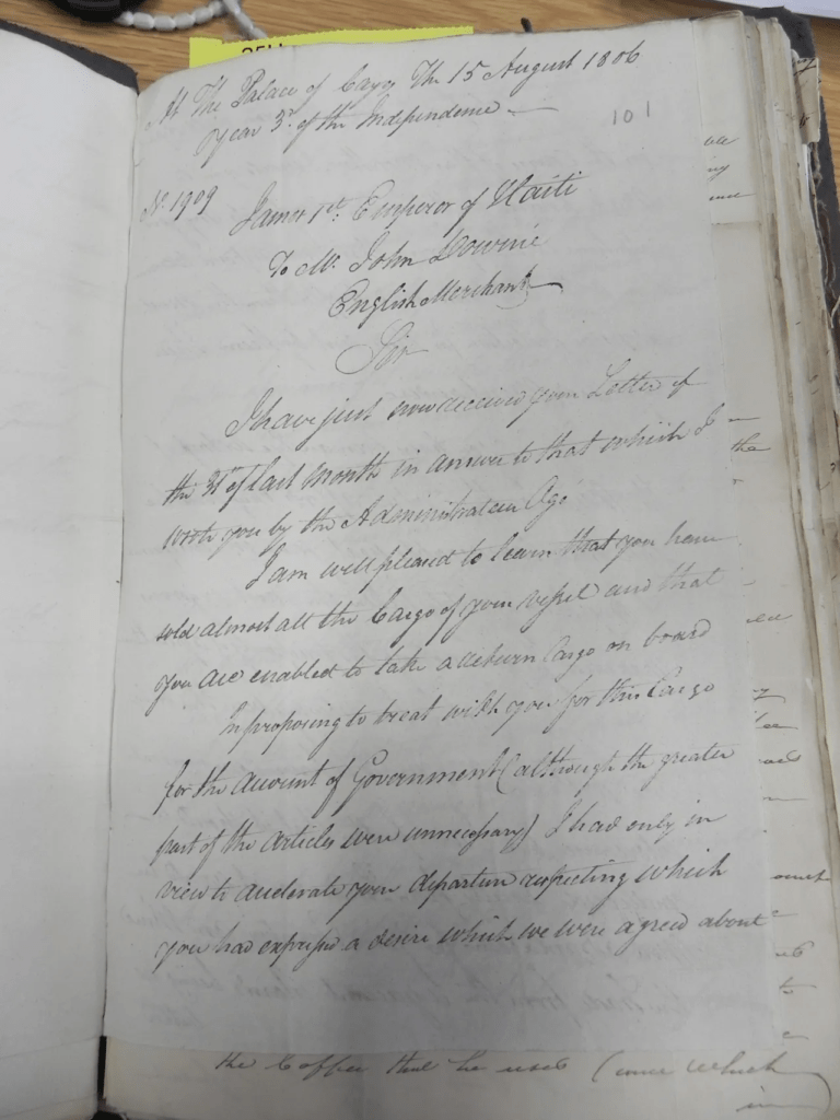 Je vous renouvelle l’assurance la plus ferme de ce principe ; de même, je n’autoriserai aucune manœuvre déloyale de la part des négociants d’Haïti.