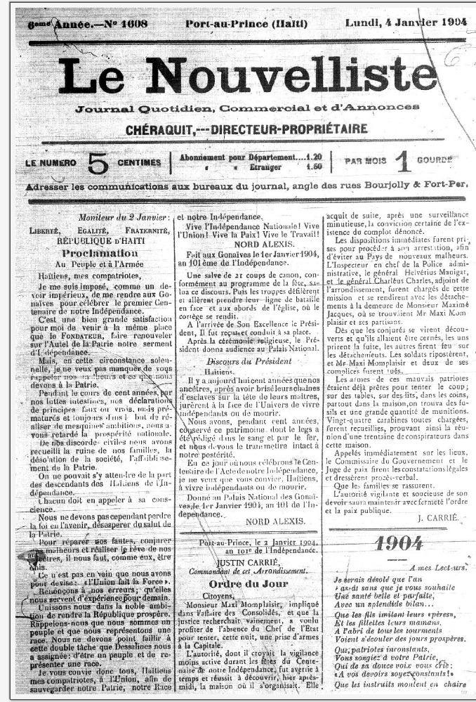 le 1er Janvier 1904, an 101 de l’Indépendance.