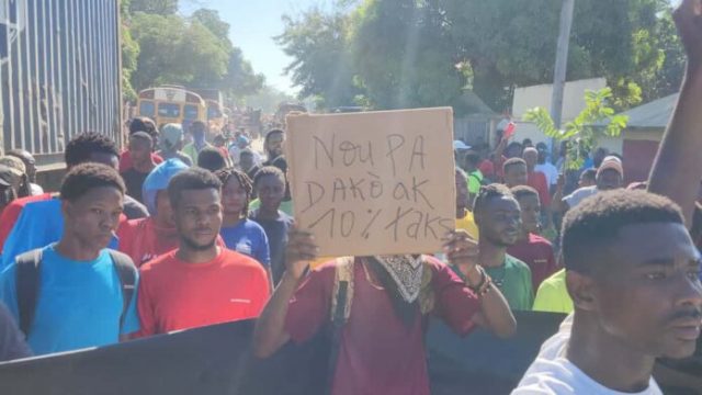 L’Etat haïtien a mis sur pause le prélèvement de la taxe sur les salaires. Dans une note de presse conjointe publiée le mardi 7 octobre, le ministère de l’Economie et des Finances (MEF) et le ministère des Affaires sociales et du Travail (MAST) avaient annoncé qu’: « Aucun prélèvement par la Direction Générale des Impôts (DGI) ne sera effectué à titre temporaire sur les salaires des travailleurs concernés. Une rencontre tripartite avec les représentants de l’exécutif, des syndicats et du patronat sera organisée en vue de discuter de la question du salaire minimum. De leur côté, les représentants des syndicats concernés se sont engagés à porter les ouvriers à reprendre leur activité le mercredi 8 octobre 2025 ».