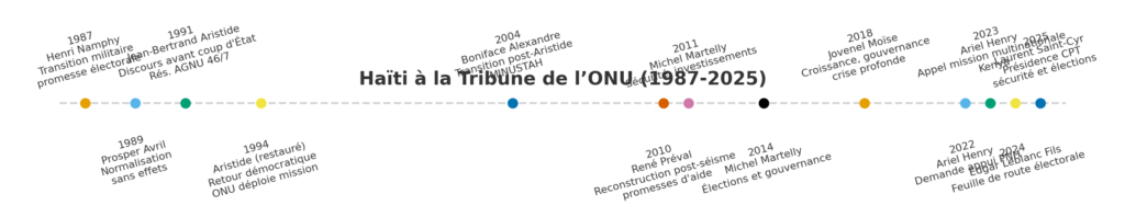 L’intervention annoncée s’inscrit dans une longue tradition. Depuis près de quarante ans, les dirigeants haïtiens se succèdent à la tribune de l’ONU, avec des accents variables mais une constante : rechercher à l’extérieur ce qui ne parvient pas à s’enraciner durablement à l’intérieur.