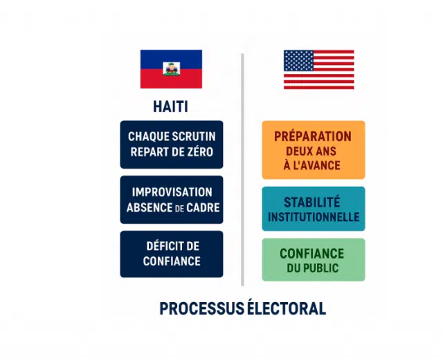 Aux États-Unis, le processus électoral est une institution permanente ; en Haïti, il reste une mission à chaque fois réinventée.