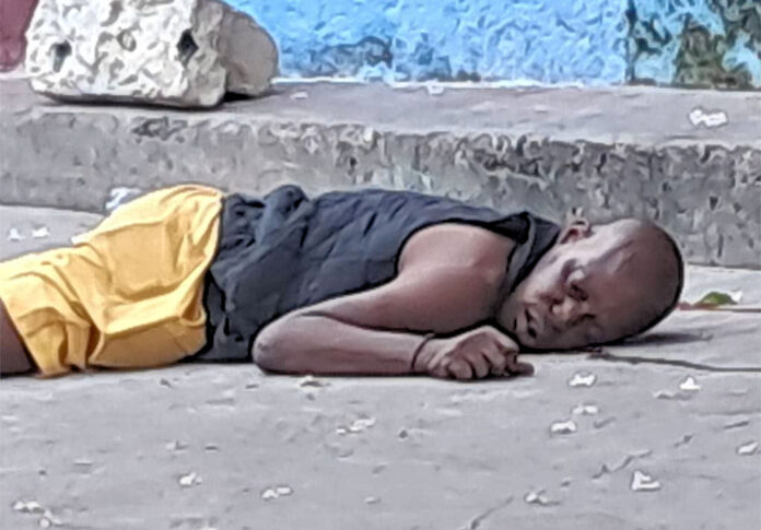 Jean Max “Papouche” Saint-Louis lying dead on the street in front of his house on Jan. 7, shot dead by Prince mercenaries.