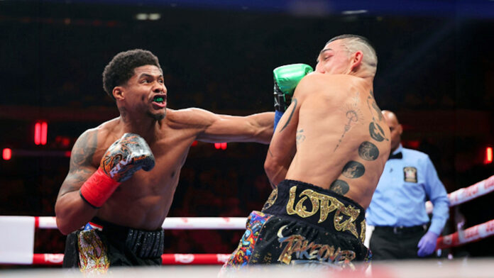 At the sound of the first bell up until the 12th and final round, Shakur put on a masterful boxing performance. Teofimo had no answers for Shakur’s speed, punch combinations, and ring movement and IQ. At the end, Teofimo’s swollen, bruised, and bloody face was the evidence of Shakur’s dominance. There seemed to be a sense of panic from Teofimo’s trainer and father Teofimo, Sr., imploring his son to do better as the fight progressively slipped away from him.